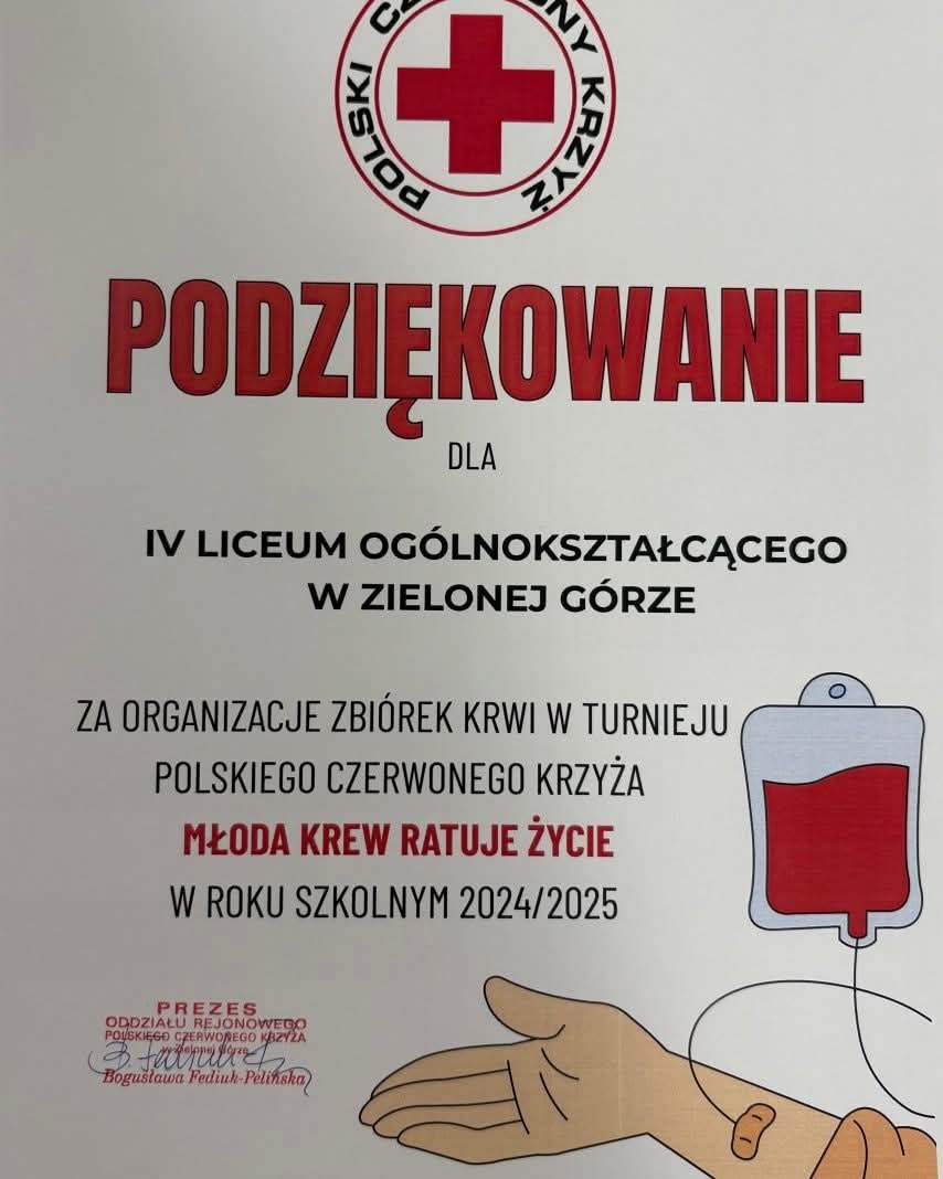 Serdeczne podziękowania dla Rejonowego Oddziału PCK w Zielonej Górze za inspirowanie do dzielenia się dobrem, promowanie idei krwiodawstwa