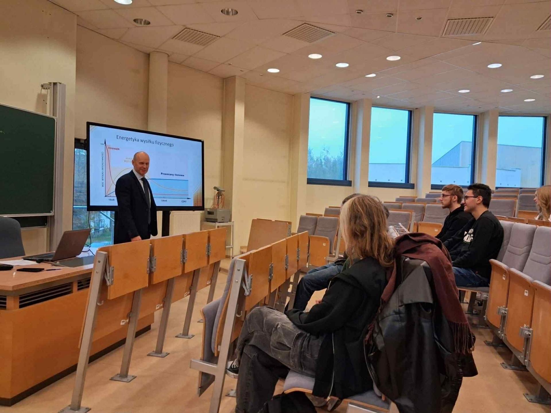 We wtorek, 21. października, uczestniczyliśmy w trzecim module zajęć w ramach projektu mUZg.🧠🤯Tym razem mogliśmy wcielić się w studentów medycyny.👨⚕️🩺⚕️🏥 Na początek wysłuchaliśmy bardzo ciekawego wykładu na temat wydolności tlenowej organizmu.🫁 Profesor Naczk w bardzo interesujący sposób wprowadził nas w zawiłe mechanizmy wytwarzania energii przez nasze organizmy. Następnie udaliśmy się do ultranowoczesnego laboratorium wydolnościowego.🧪🧫🔬 Jeden z Lotników miał możliwość poddać się próbie wysiłkowej.💪🏋️ Druga część ćwiczeń to zajęcia dotyczące składu ciała ludzkiego. Wszyscy mogliśmy przebadać się na maszynie analizującej skład ciała, a pan profesor dokonał wnikliwej analizy każdego pomiaru. To było bardzo ciekawe doświadczenie.👌👍